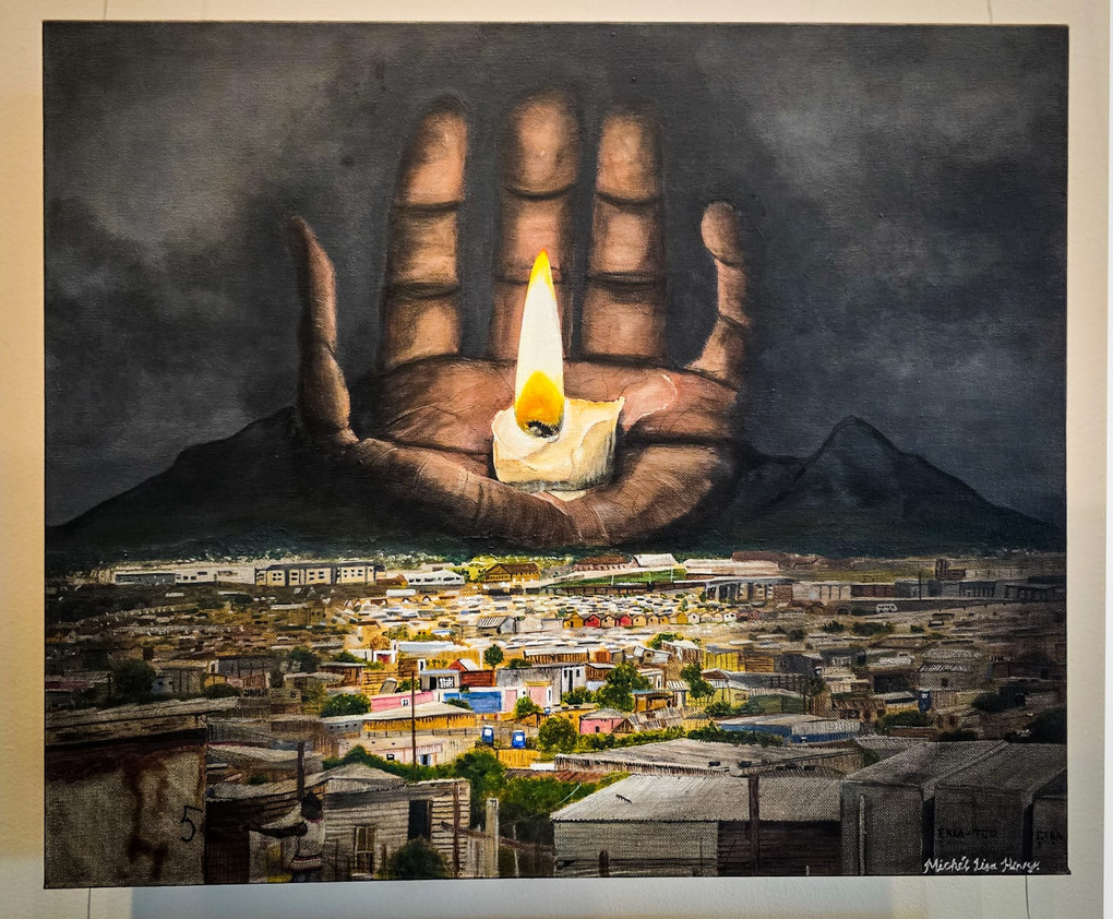 Discover a compelling collection of acrylic artworks by Cape Town-based artist Michel Lisa Henry, now on view at the main dining area of Salaam Mnandi. Each piece invites introspection and emotion, drawing from themes of faith, struggle, and serenity.